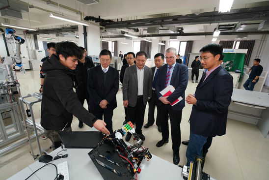 After the signing ceremony, representatives of the university and the enterprise visited the laboratory of the school of robotics and interacted and communicated with teachers and students. Everyone gave full recognition to the advanced school-enterprise cooperation mode, abundant scientific research achievements and strong faculty of Northeastern University and school of robotics, and expressed appreciation to the talent training system with the core of quality and the feature of practice of the school of robotics.