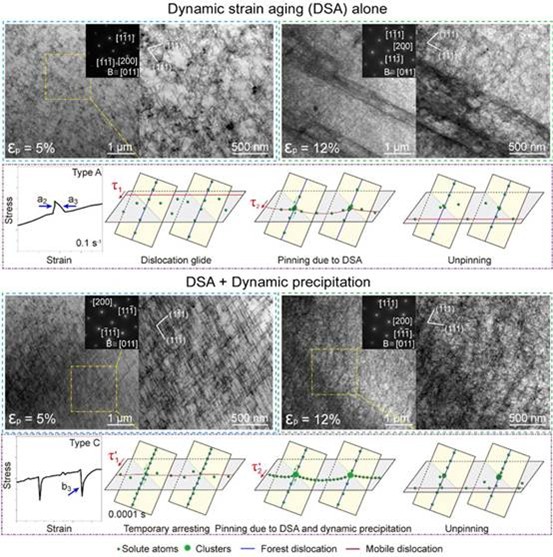 Since classical flow stress models consider only the interactions between dislocations and solute atoms, the team developed a new constitutive model for flow stress that accounts for the synergistic strengthening effect of mobile and forest dislocations under DSA.